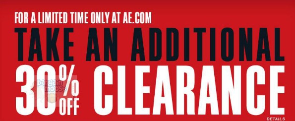 Beginning 28th December, take an additional 30% off clearance items at American Eagle Outfitters Canada. There is no need for a coupon code for this deal. Also get free shipping when you purchase 3 or more items.