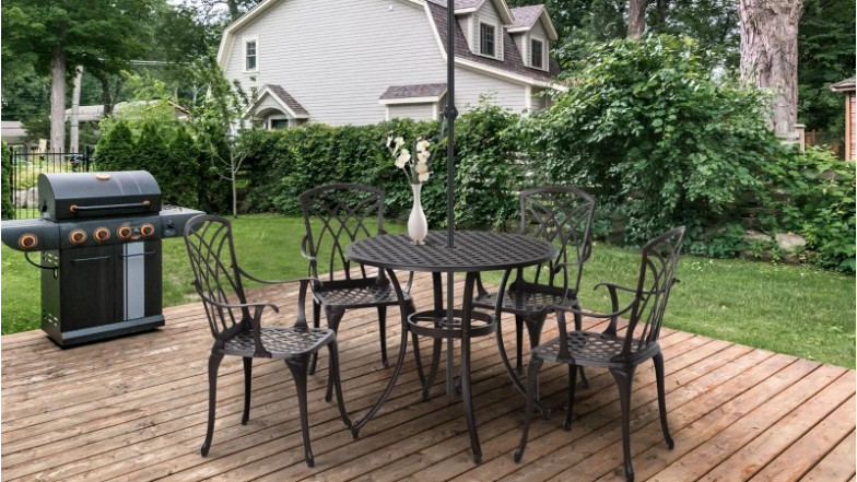 Aosom Canada has a significant markdown on the Outsunny 5-Piece Outdoor Dining Set for April 2026. This cast aluminium set, which includes a brown patio table with a parasol hole and four matching chairs, is currently discounted by $630 from its original price.