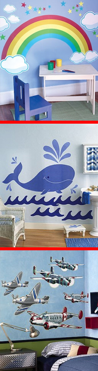 To the bottom of the picture to the right, you will see Airplanes by Wallies. This mural is also $49.99, or $32.50. This one would be excellent for a litte boys room, especially if he is a fan of airplanes.